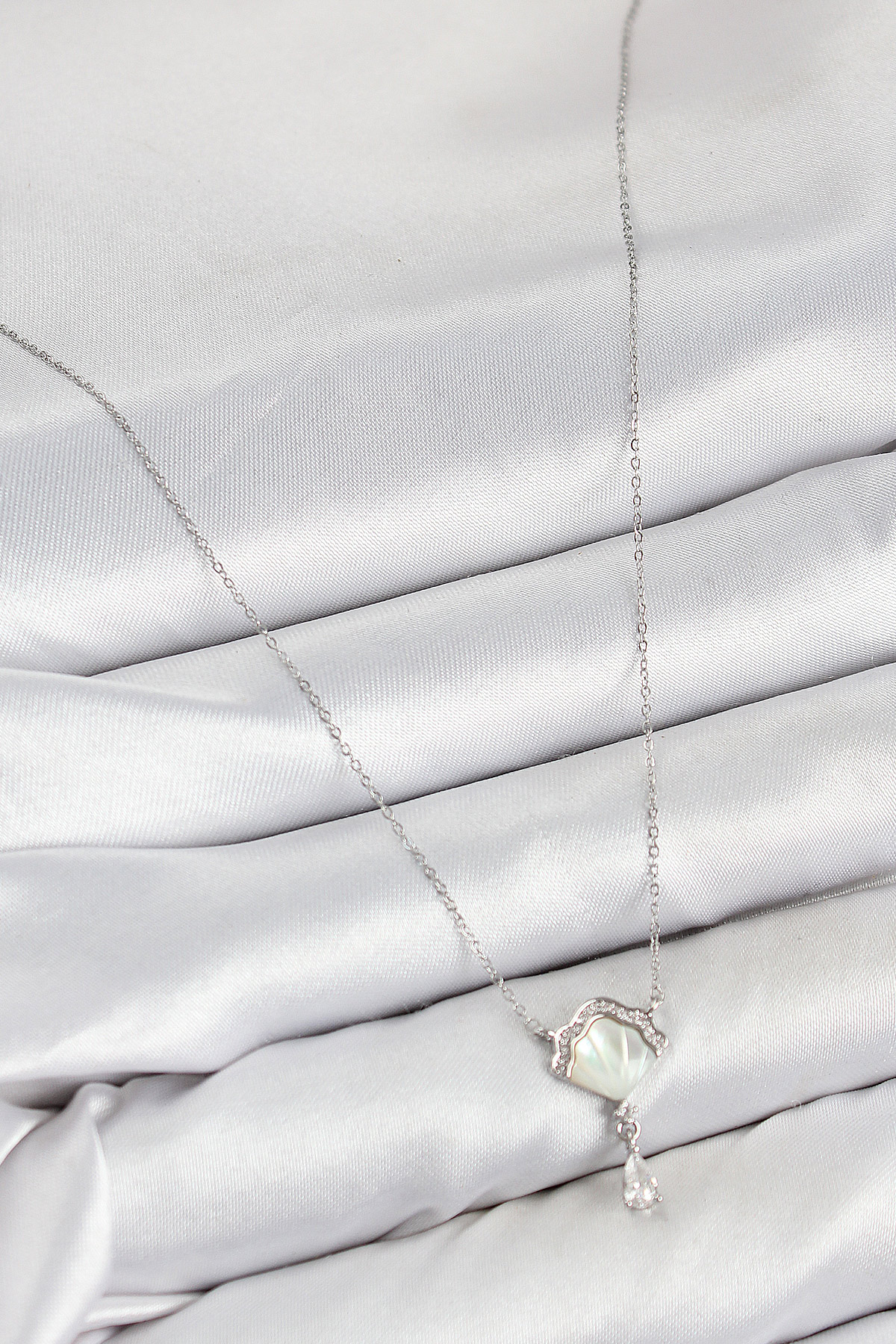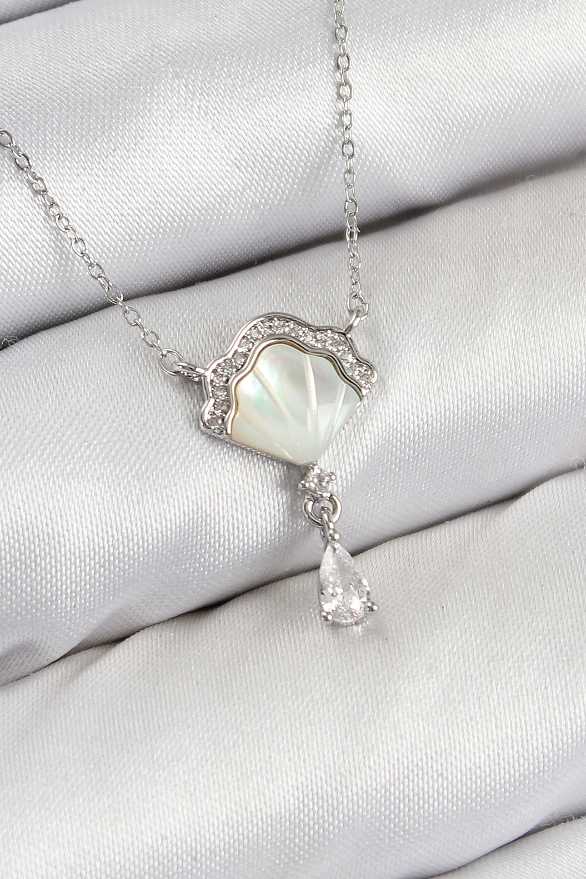 Brass Zircon Stone Oyster Pattern Silver Color Women Necklace