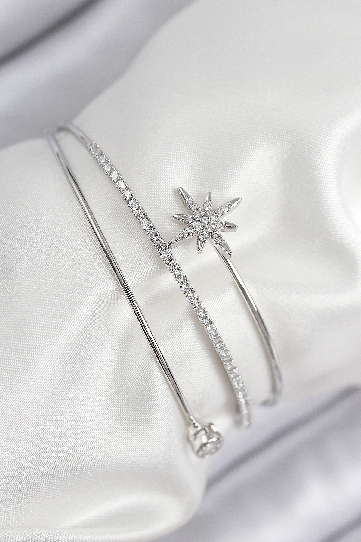 Brass Zircon Stone Polar Star Pattern Silver Color Women's Bracelet