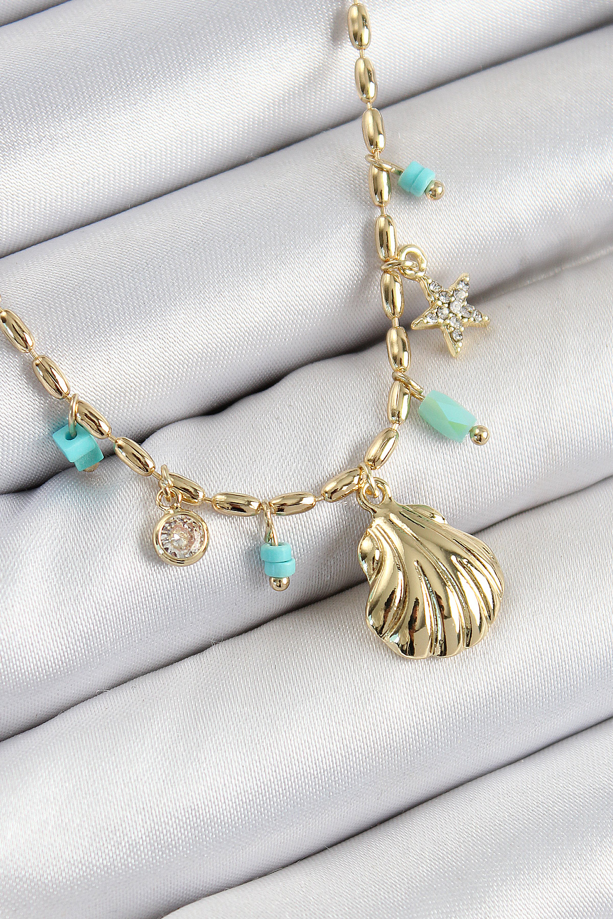 Brass Zircon Stone Sea Shell Pattern Gold Color Women Necklace