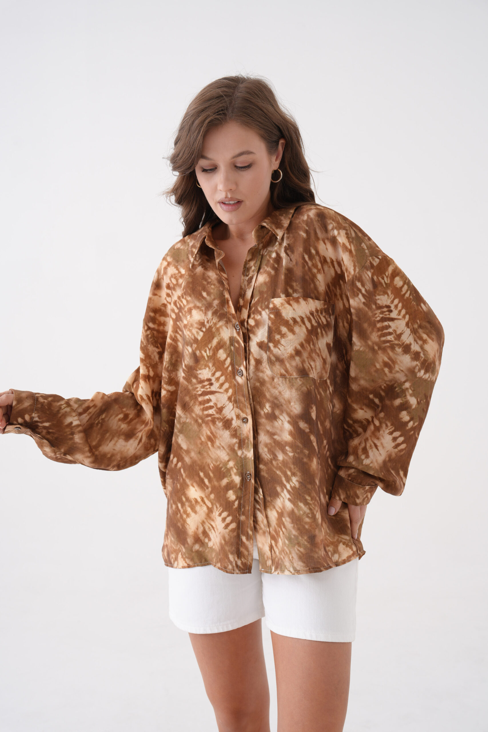 Coffee Tie Dye Pattern Modal Fabric Oversize Shirt 29188