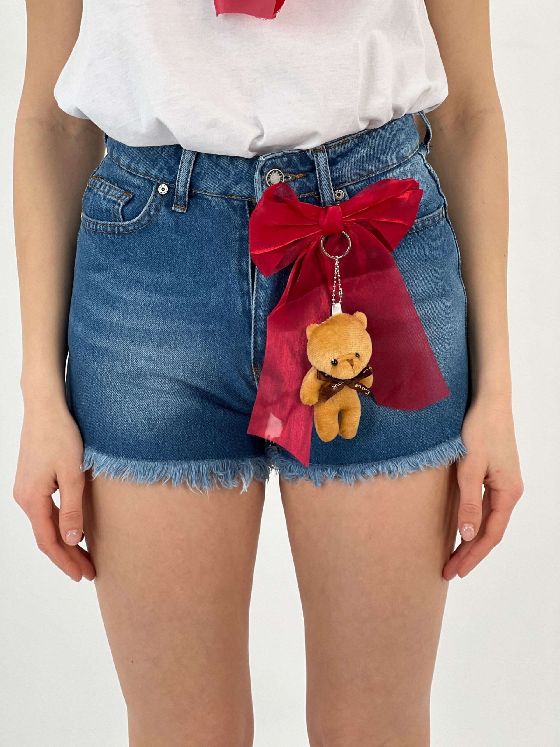 Denim Shorts Ribbon+Teddy Bear Accessory