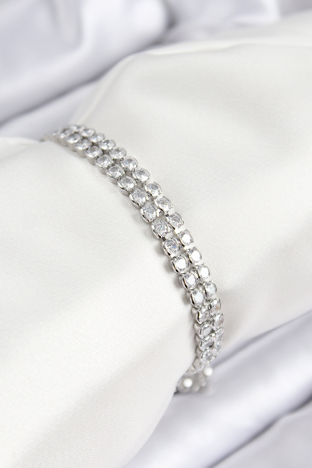 Double Row Pattern Silver Color Elevator Women Bracelet With Brass Zircon Stone