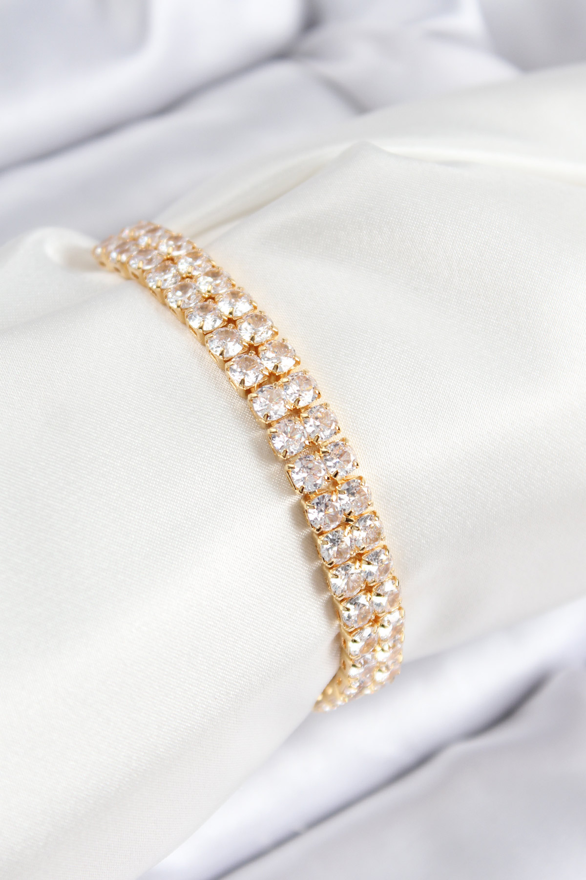 Double Row Square Model Gold Color Elevator Women Bracelet With Brass Zircon Stone