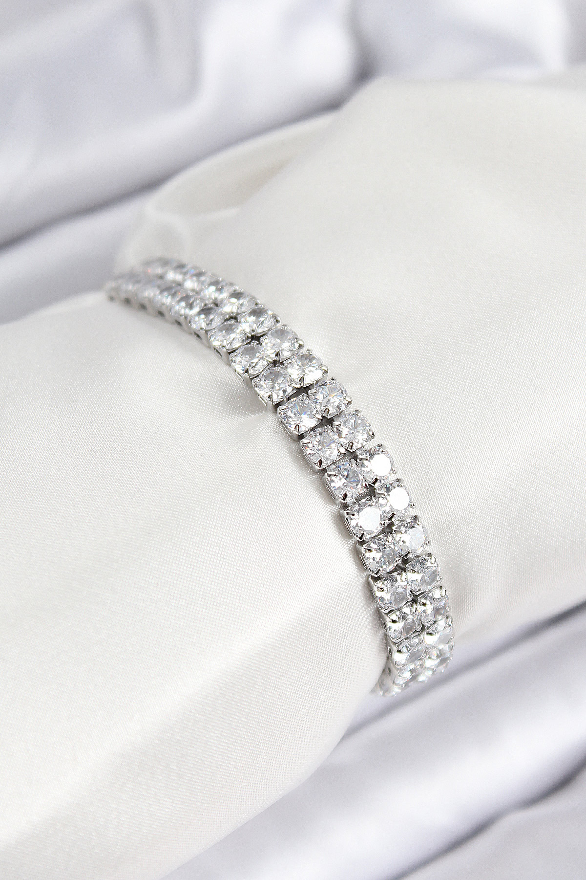Double Row Square Pattern Silver Color Elevator Women Bracelet With Brass Zircon Stone