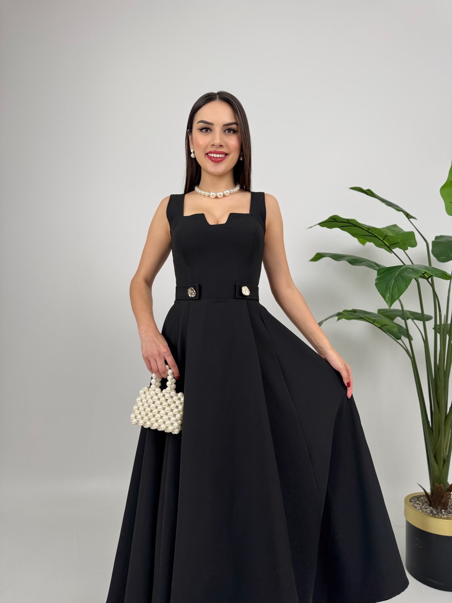 ElegantFit And Flare Dress With Square Neck