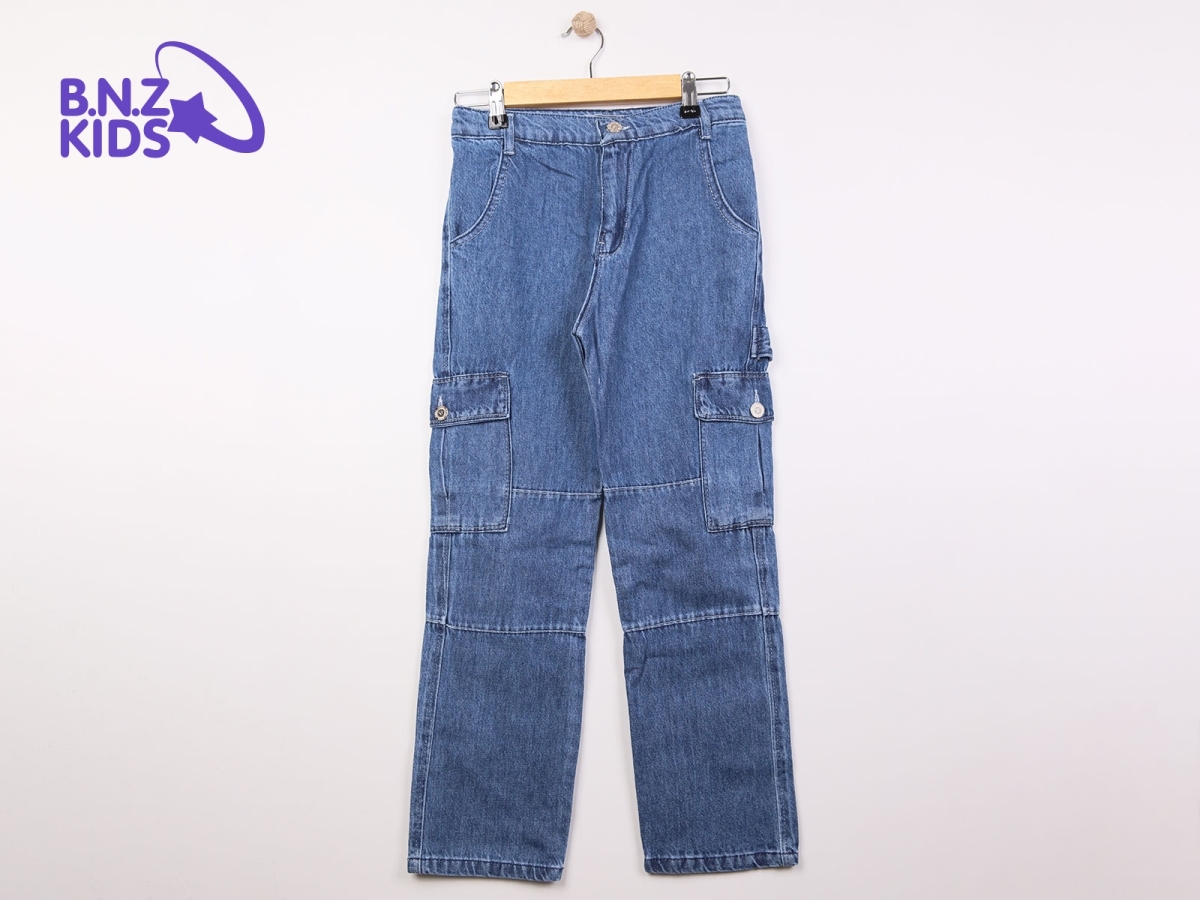 Girls' Bottom Wear - B1 - High Waist Wide Leg Cargo Pocket Girls' Jeans
