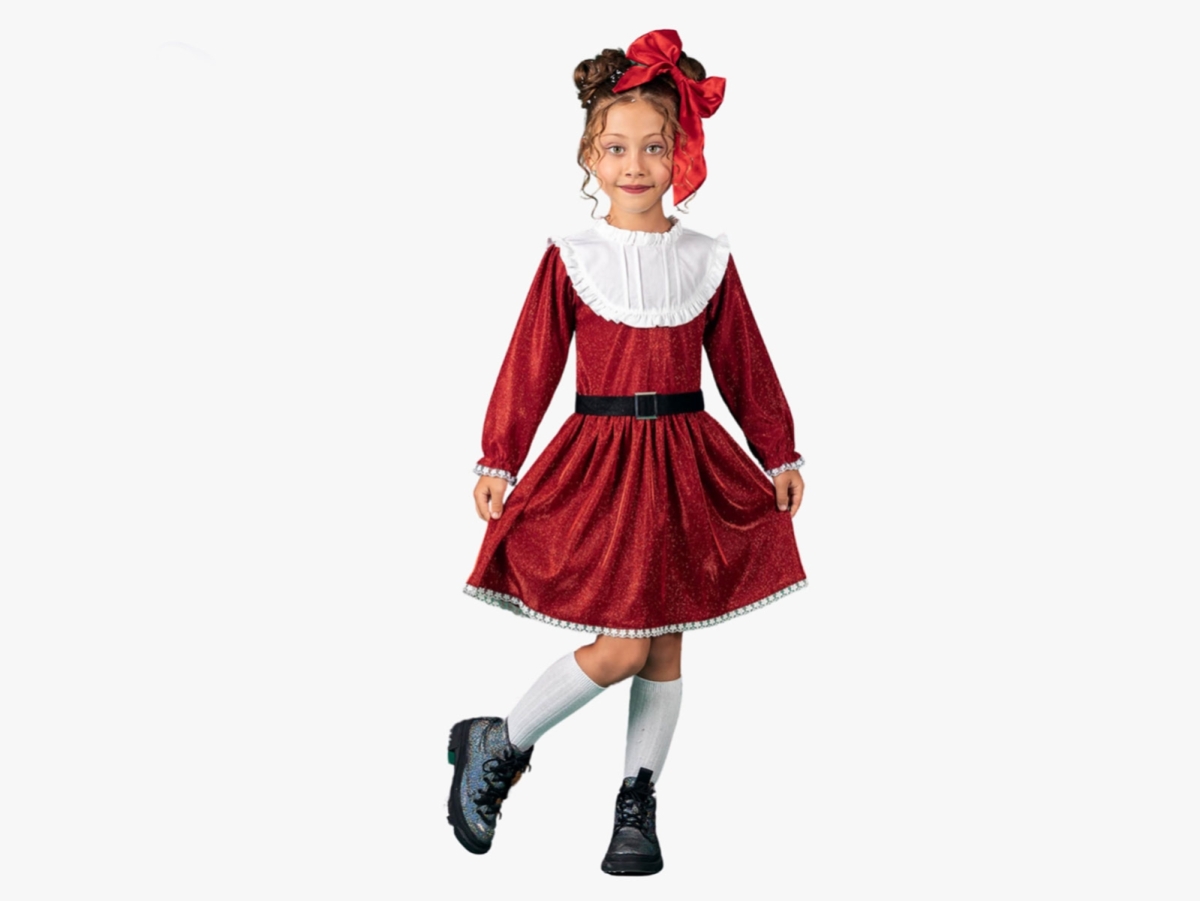 Girl's Dress - B1 - Collared Glitter Belted Christmas New Year Dress