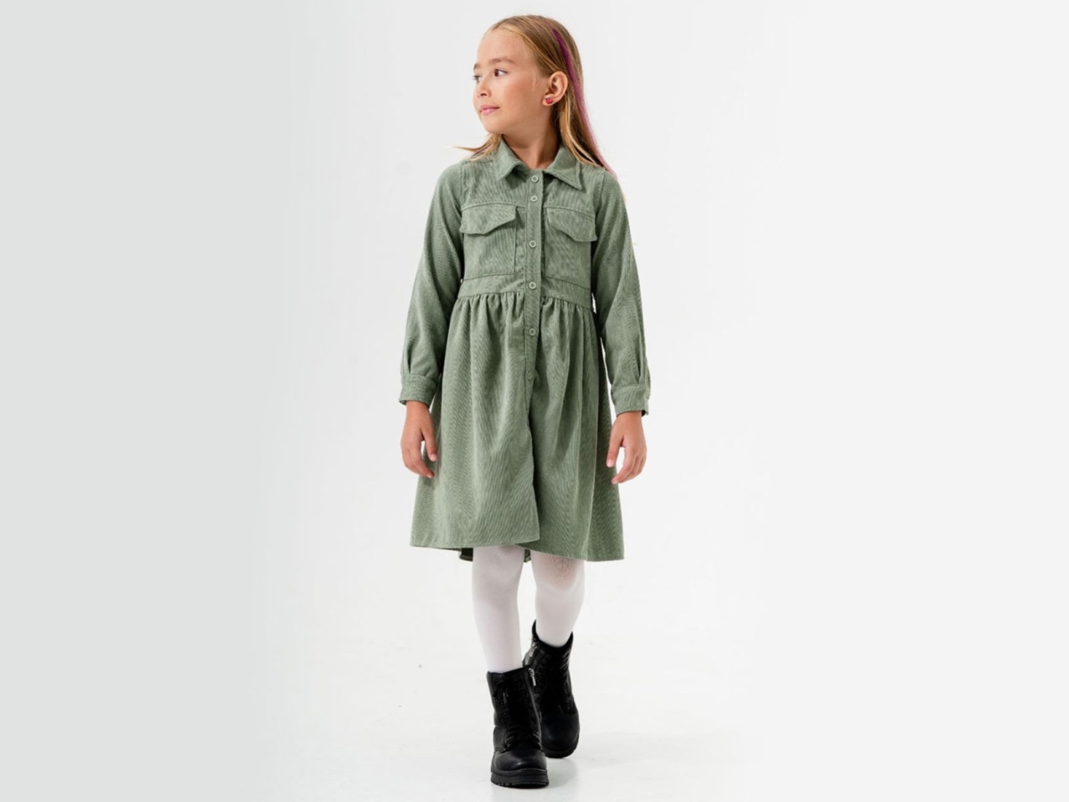Girl's Dress - B1 - Ribbed Dress with Collar and Pockets