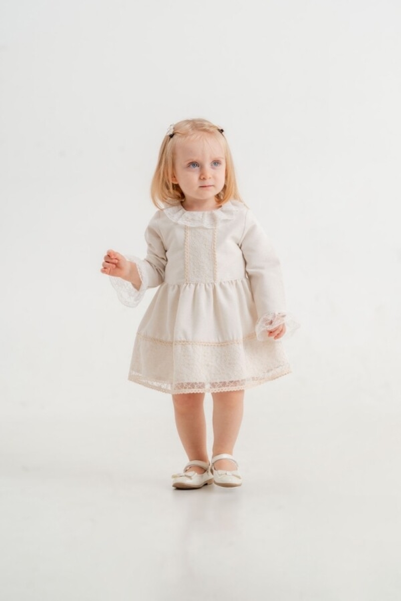 Girl's Dress - Wholesale Girl Child 4-piece Mademoiselle Lace Trimmed Linen Dress 2-6Y 1031-5890