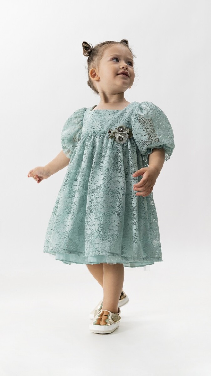 Girl's Dress - Wholesale Girl Child Balloon Sleeve Clover Dress 2-5Y 1022-23323