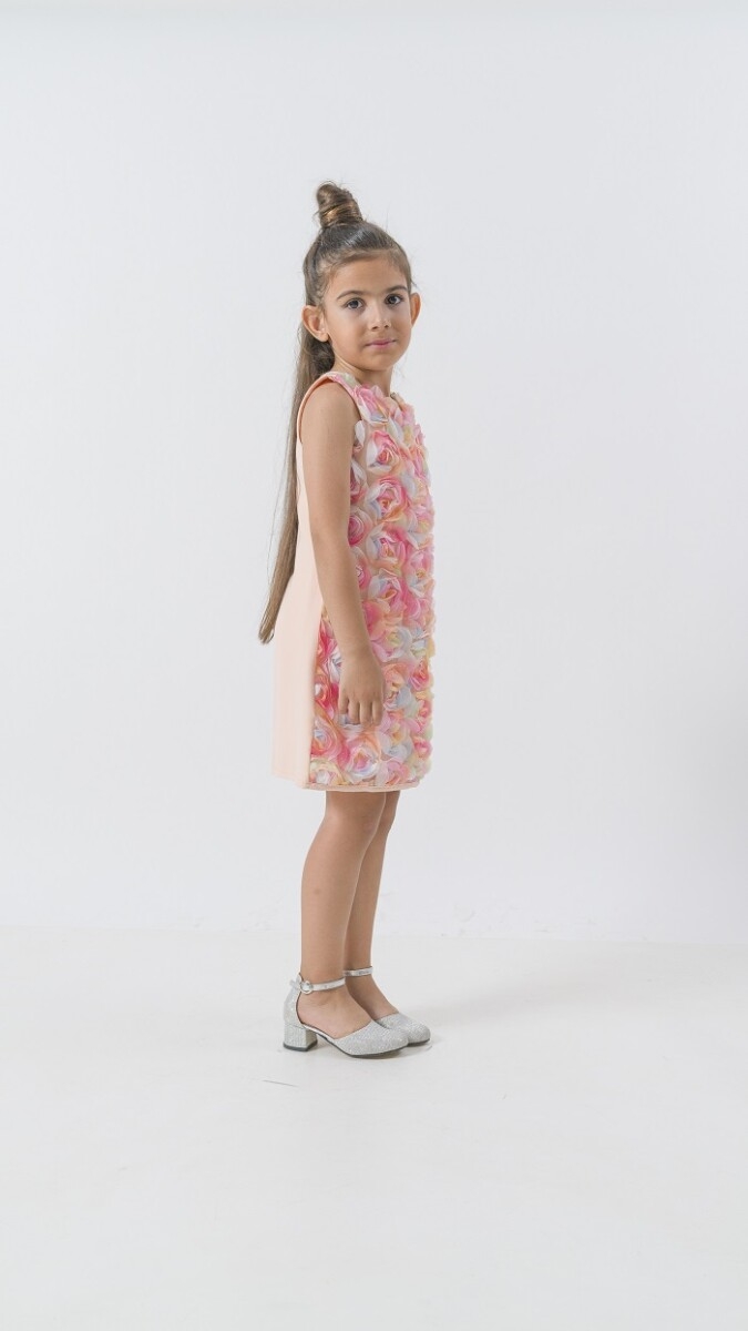 Girl's Dress - Wholesale Girl Child Colorful Rose Patterned Plain Slim Fit Dress 2-5Y 1022-24323
