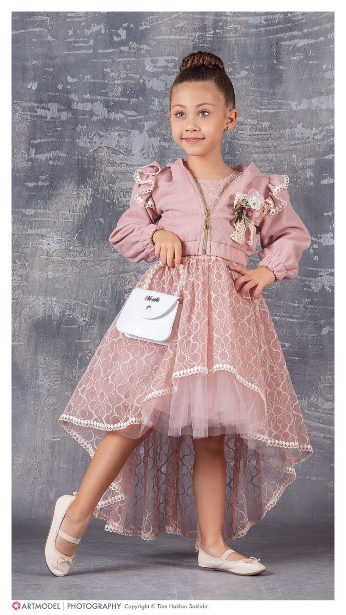 Girl's Dress - Wholesale Girls' 3-Piece Dress, Bolero, and Bag Set 6-12Y 1042-2357