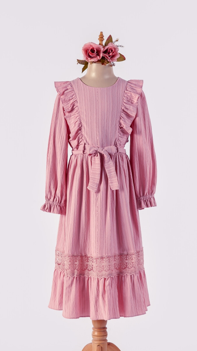 Girl's Dress - Wholesale Girls' Dress with Belt 6-12Y 1042-2525