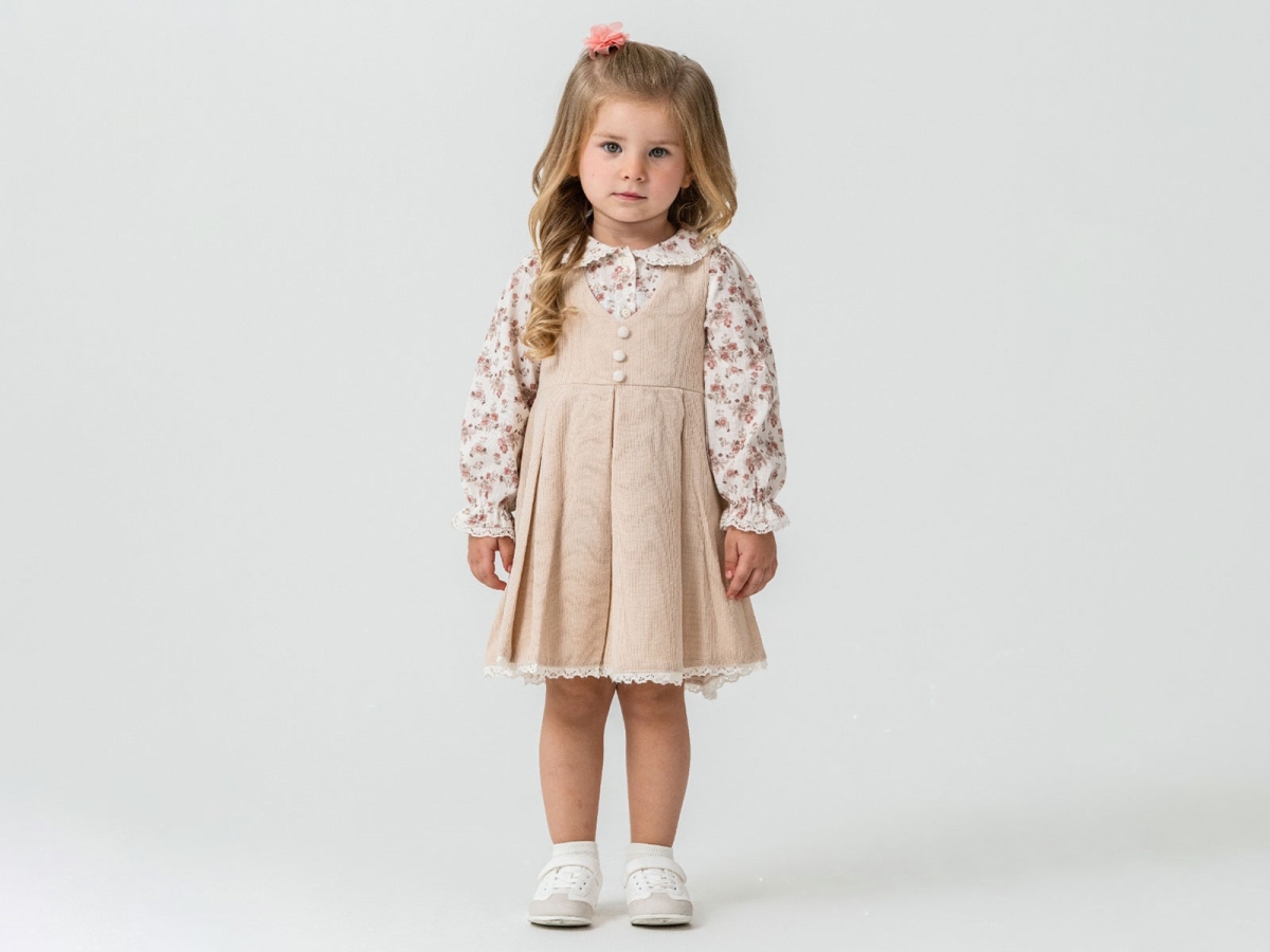 Girl's Jumpsuit - B1 - Floral Pattern Lace Collar Two-Piece Pinafore