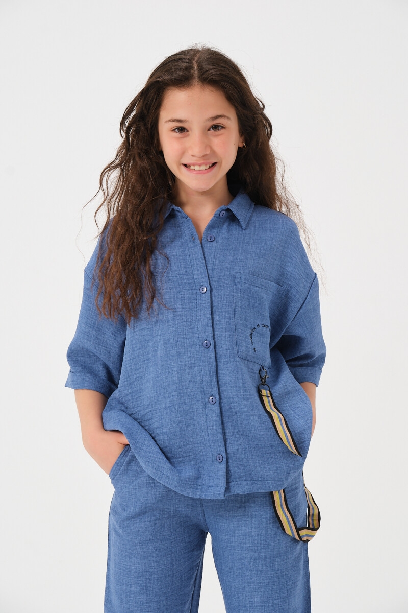 Girl's Shirt - Wholesale Girl Accessory Detailed, Pocketed, Short Sleeve Shirt 8-15Y 2051-241Z4ALS81