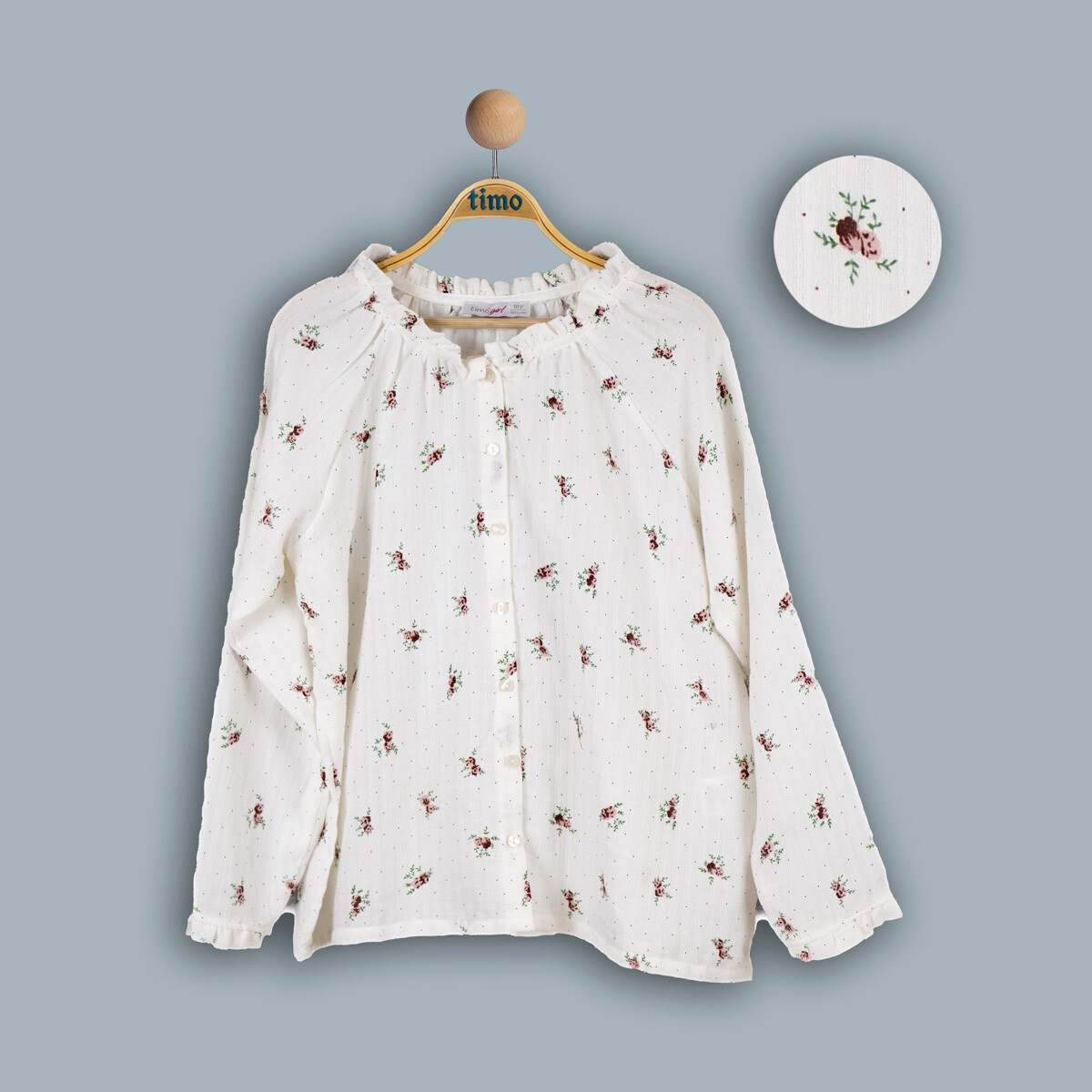 Girl's Shirt - Wholesale Girl Muslin Printed Shirt 10-13Y 1018-TK4DÜ202242294