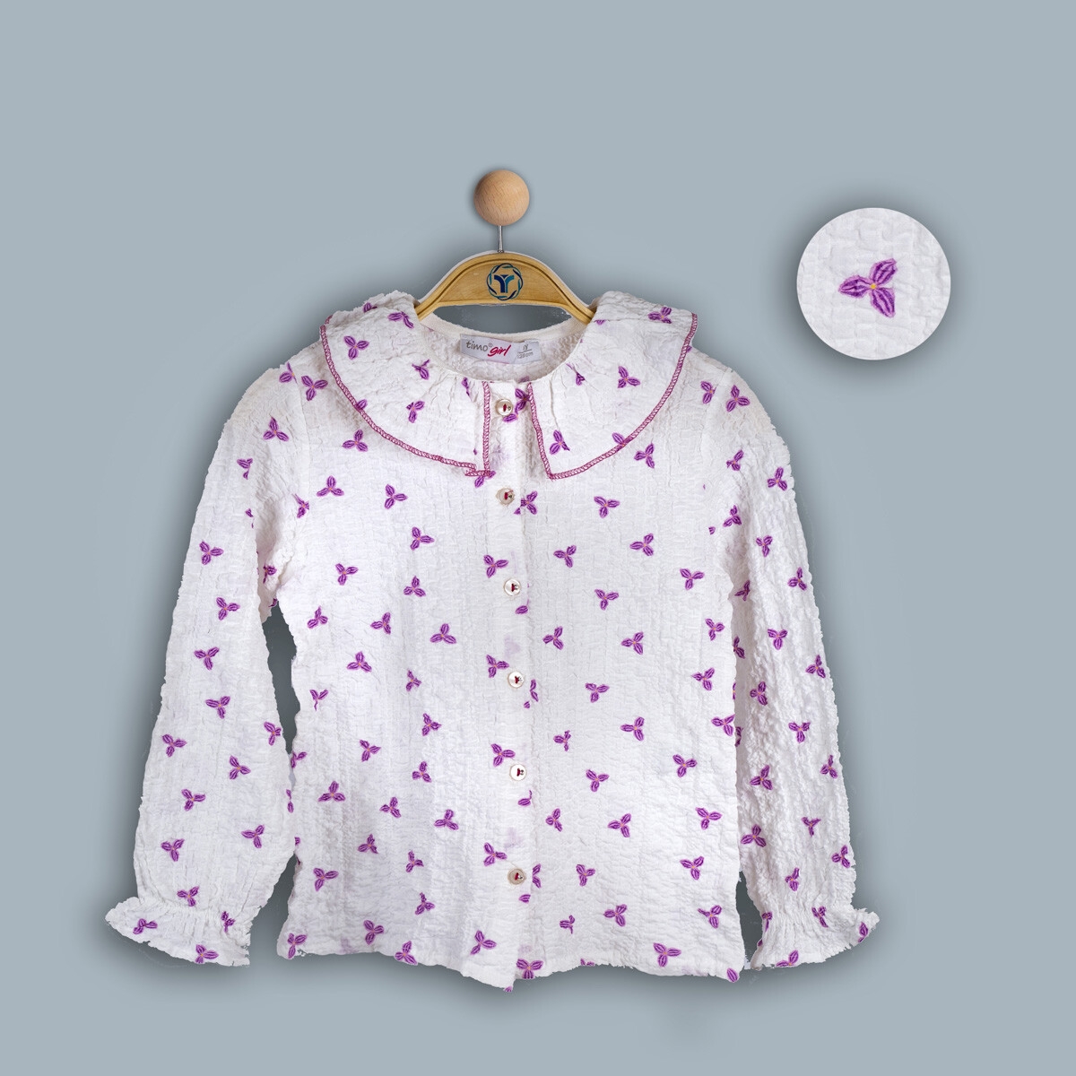 Girl's Shirt - Wholesale Girl's Blouse with Ruffled Collar 6-9Y 1018-TK4DÜ012243393
