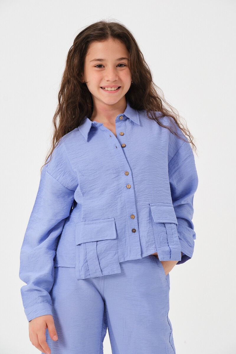 Girl's Shirt - Wholesale Girl's Long-Sleeved Shirt with Pockets 8-15Y 2051-241Z4ALK81
