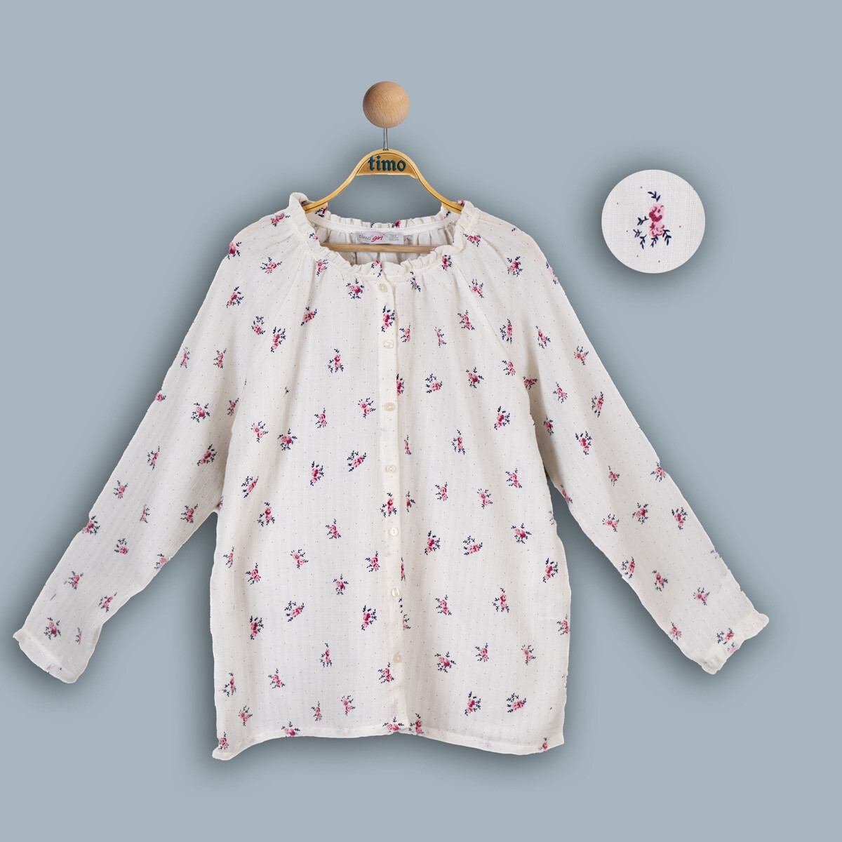 Girl's Shirt - Wholesale Girl's Muslin Printed Shirt 10-13Y 1018-TK4DÜ202242294