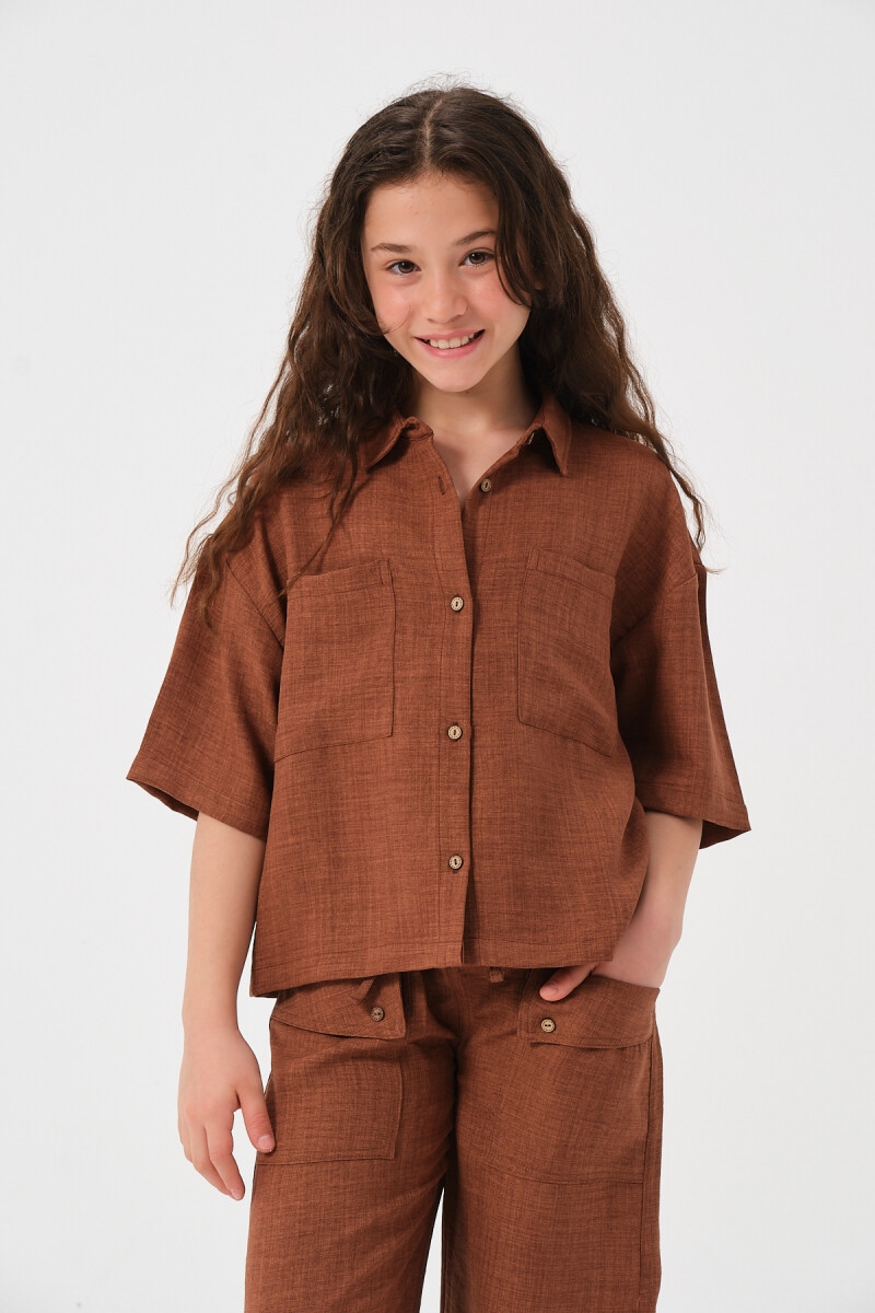 Girl's Shirt - Wholesale Girls' Pocket Short Sleeve Shirt 8-15Y 2051-241Z4ALM81