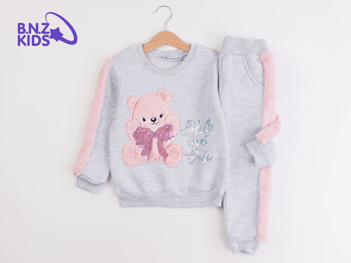 Girls' Suits - B1 - Bear Embroidered Girls' Suit Brushed 3-Thread