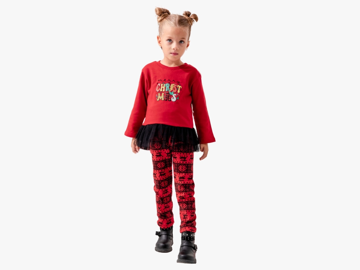 Girls' Suits - B1 - Christmas Printed Noel Yılbaşı Girl Set