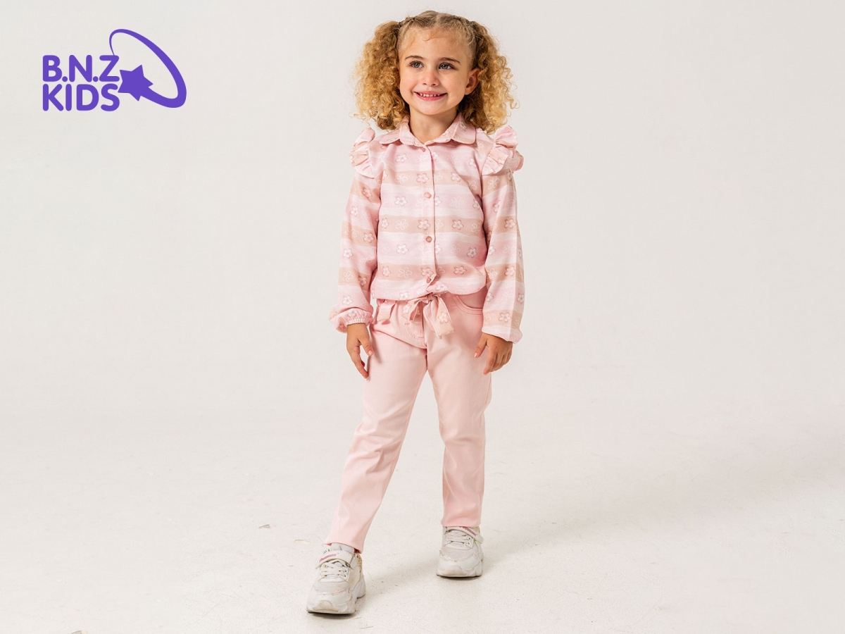 Girls' Suits - B1 - Flower Patterned Ruffled Shoulder Digital Fabric Girl's Set