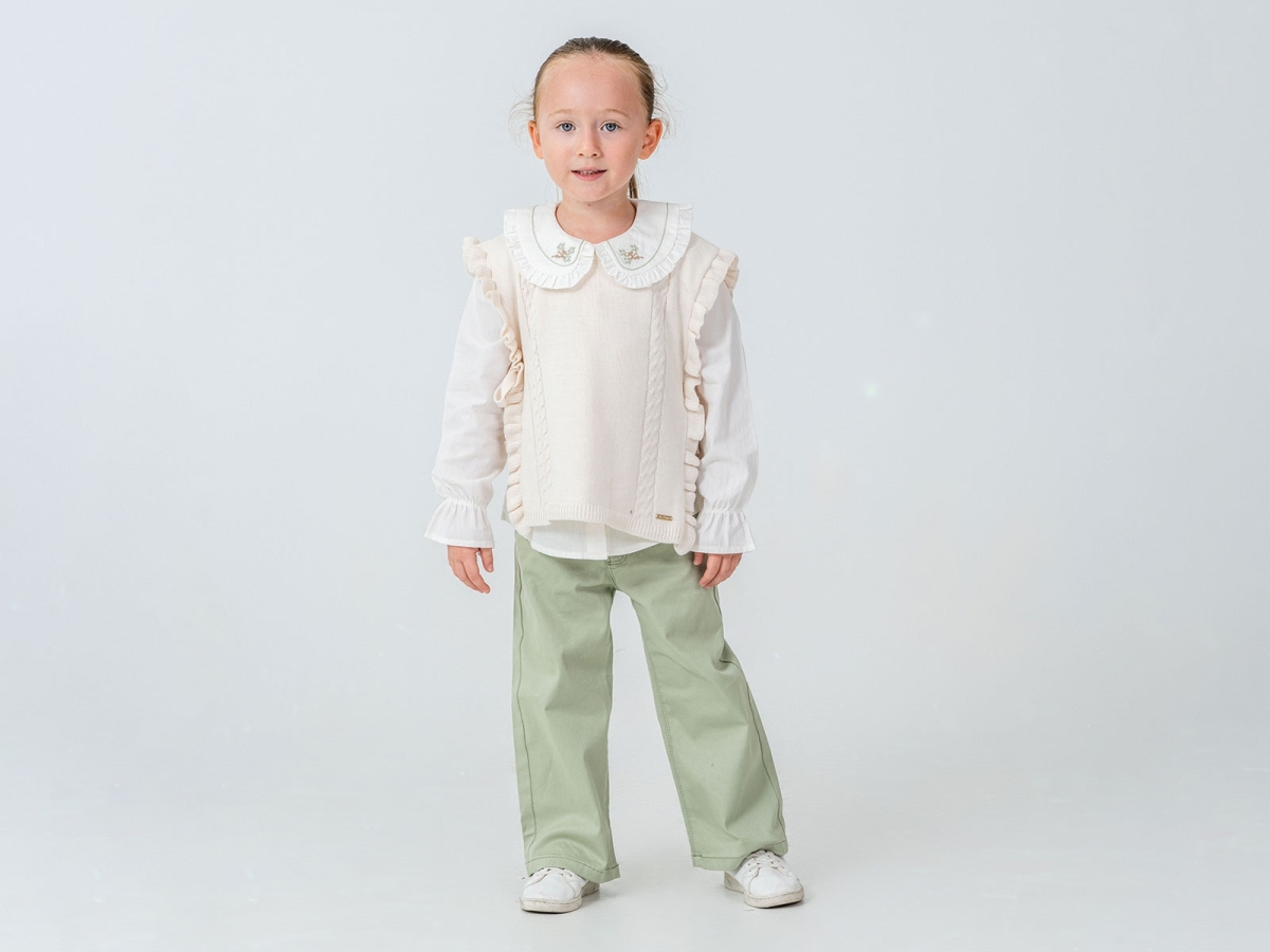 Girls' Suits - B1 - Knitted Vest Girl Linen Set