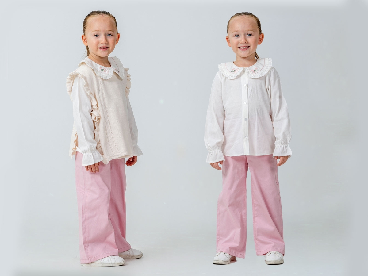 Girls' Suits - B1 - Knitted Vest Girl Linen Set