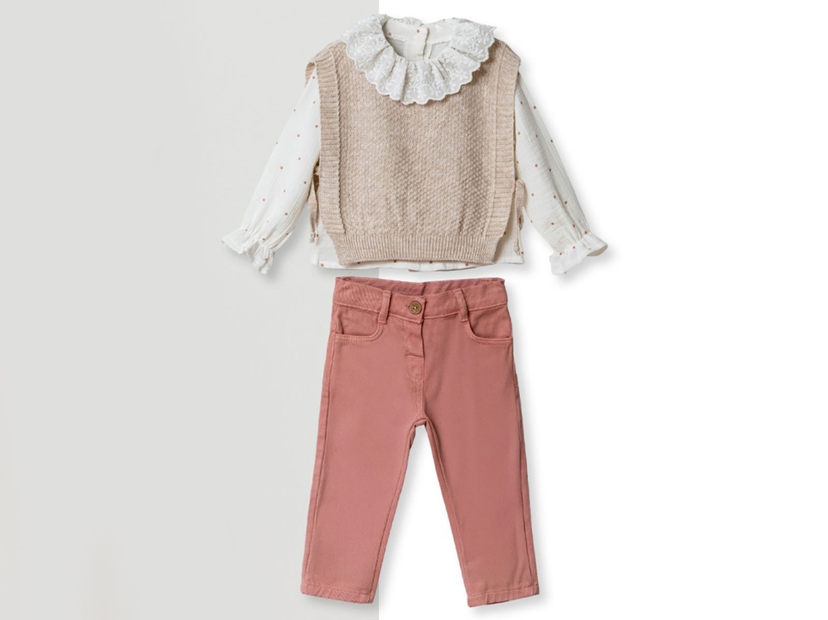 Girls' Suits - B1 - Lace Collar Knit Sweater Three-Piece Girls' Set