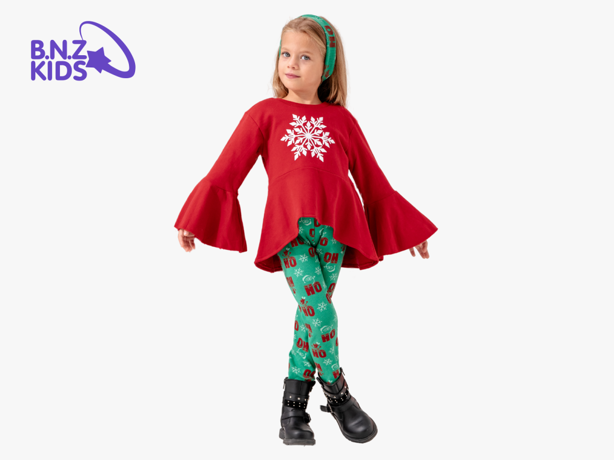 Girls' Suits - B1 - Snowflake Printed Girls' Christmas New Year Set Fleece-lined 2-thread