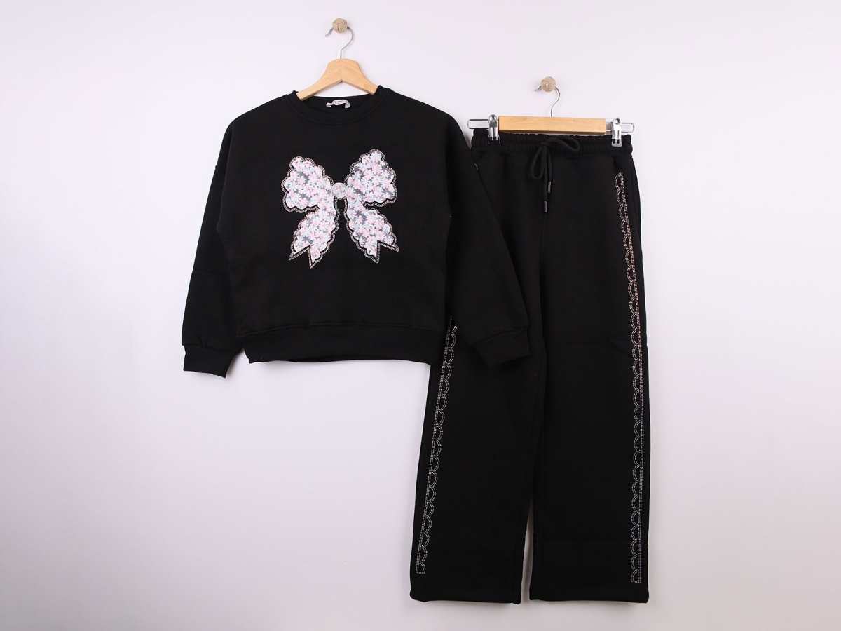 Girls' Suits - B1 - Stone Detailed Girls' Set 3-Thread Brushed