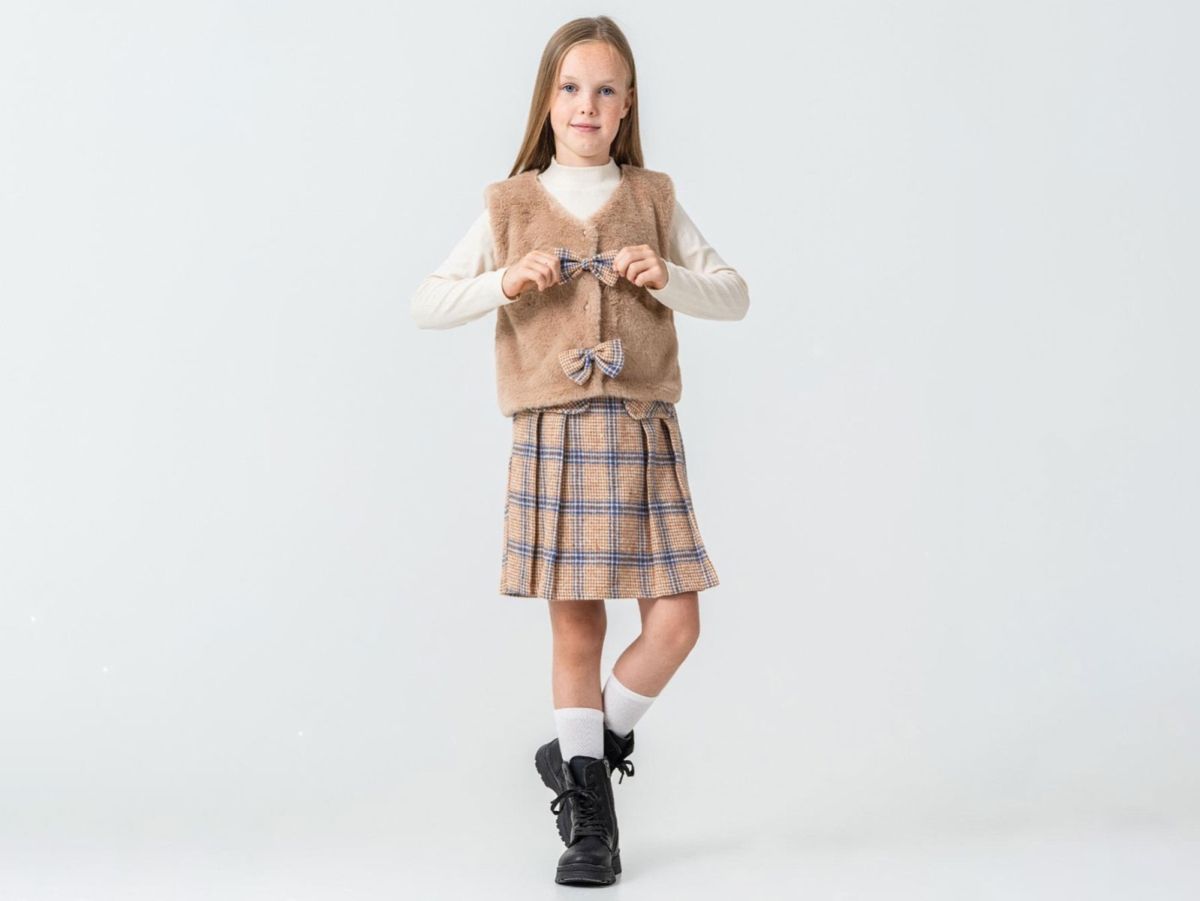Girls' Suits - B1 - Three-Piece Girl Set with Plush Vest and Skirt