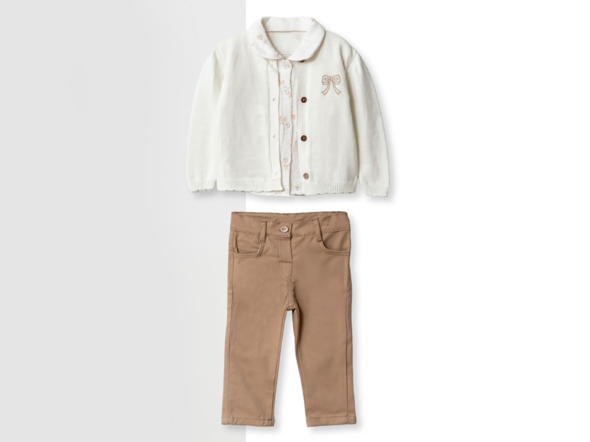 Girls' Suits - B1 - Three-Piece Girl's Set with Bow Print Cardigan