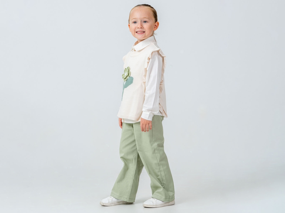 Girls' Suits - B1 - Three-Piece Girls' Set with Embroidered Sweater