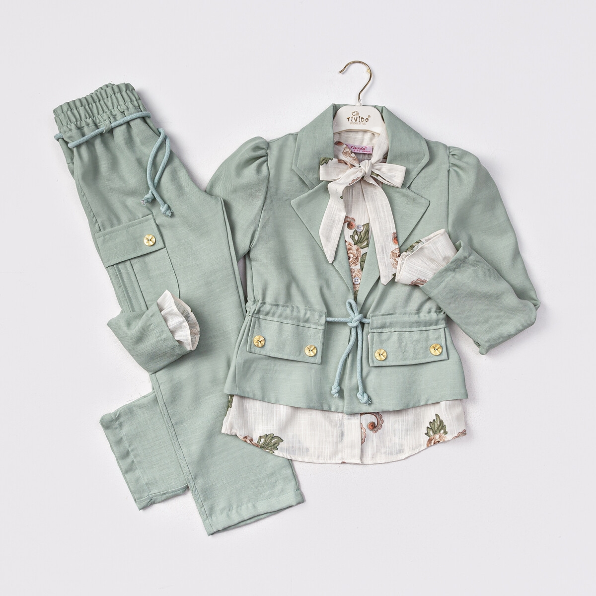 Girls' Suits - Wholesale Girls' 2-Piece Set with Jacket, Shirt, and Pants 6-12Y 1042-2552