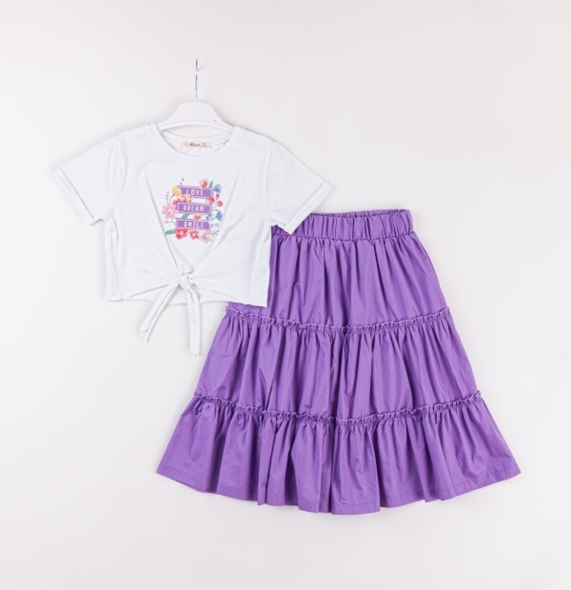 Girls' Suits - Wholesale Girls' 2-Piece T-Shirt and Skirt Set 7-10Y 1016-24143