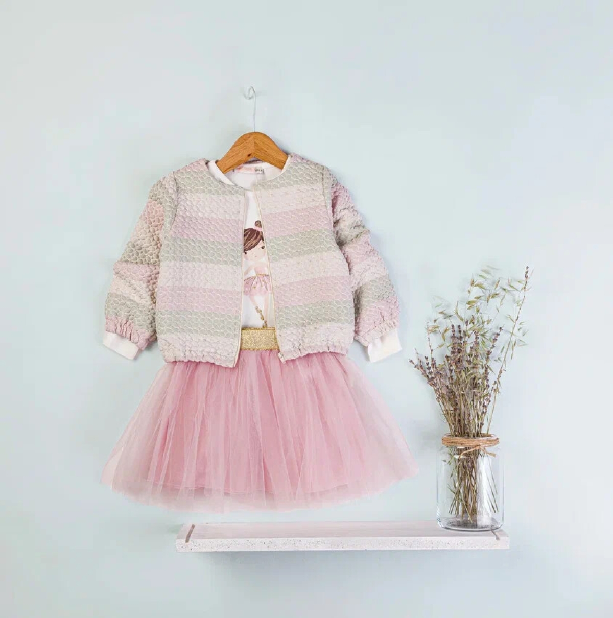 Girls' Suits - Wholesale Girls' 3-Piece Floral Patterned Bodysuit, Jacket, and Tulle Skirt Set 1-4Y 1002-4582