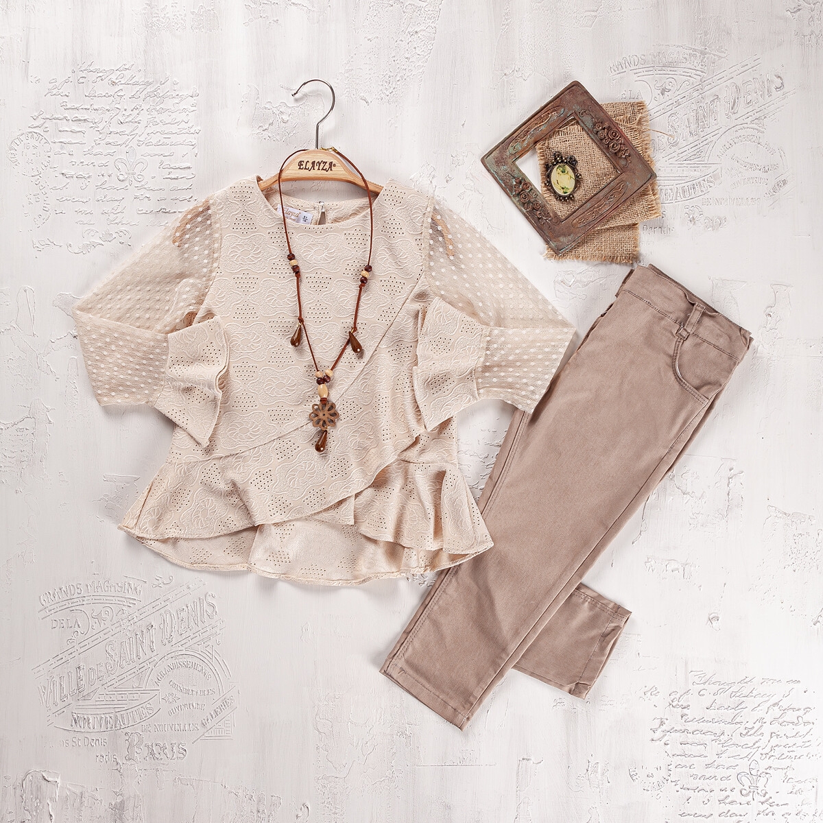 Girls' Suits - Wholesale Girls' Blouse and Pants Set 5-8 Years 2023-2266