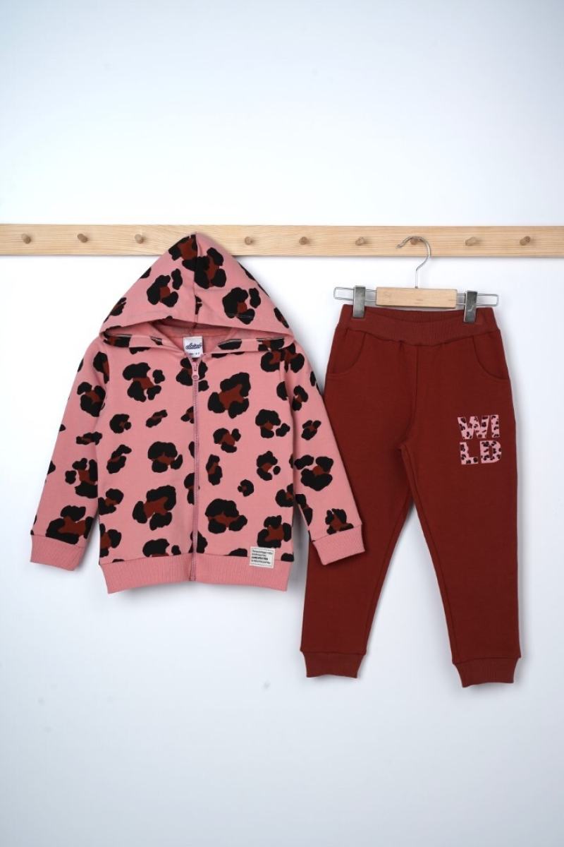 Girls' Suits - Wholesale Girls Leopard Print Zippered Tracksuit Set 3-6Y 1025-21606