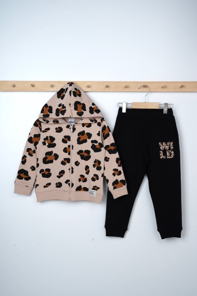 Girls' Suits - Wholesale Girls Leopard Print Zippered Tracksuit Set 3-6Y 1025-21606