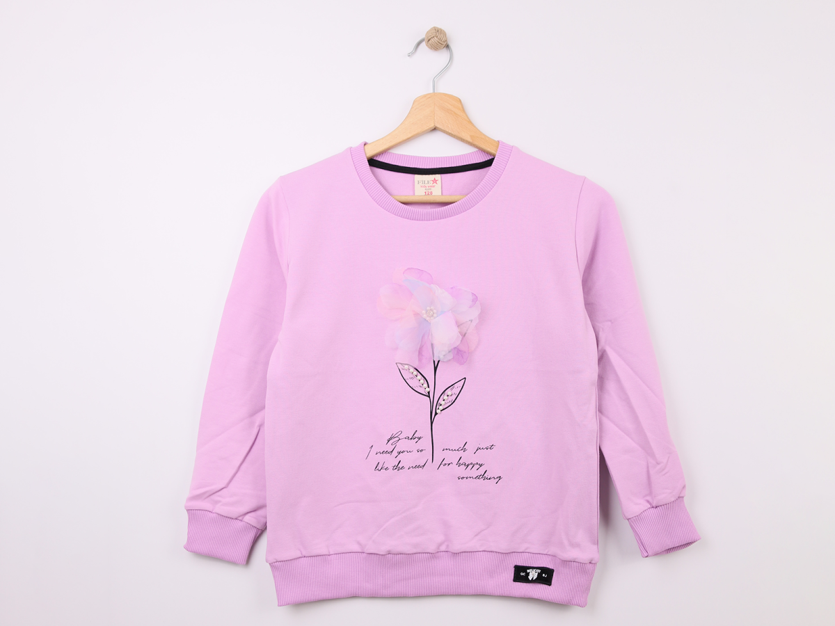 Girls' Tops - B1 - Floral Print Oversize Girls' Sweatshirt
