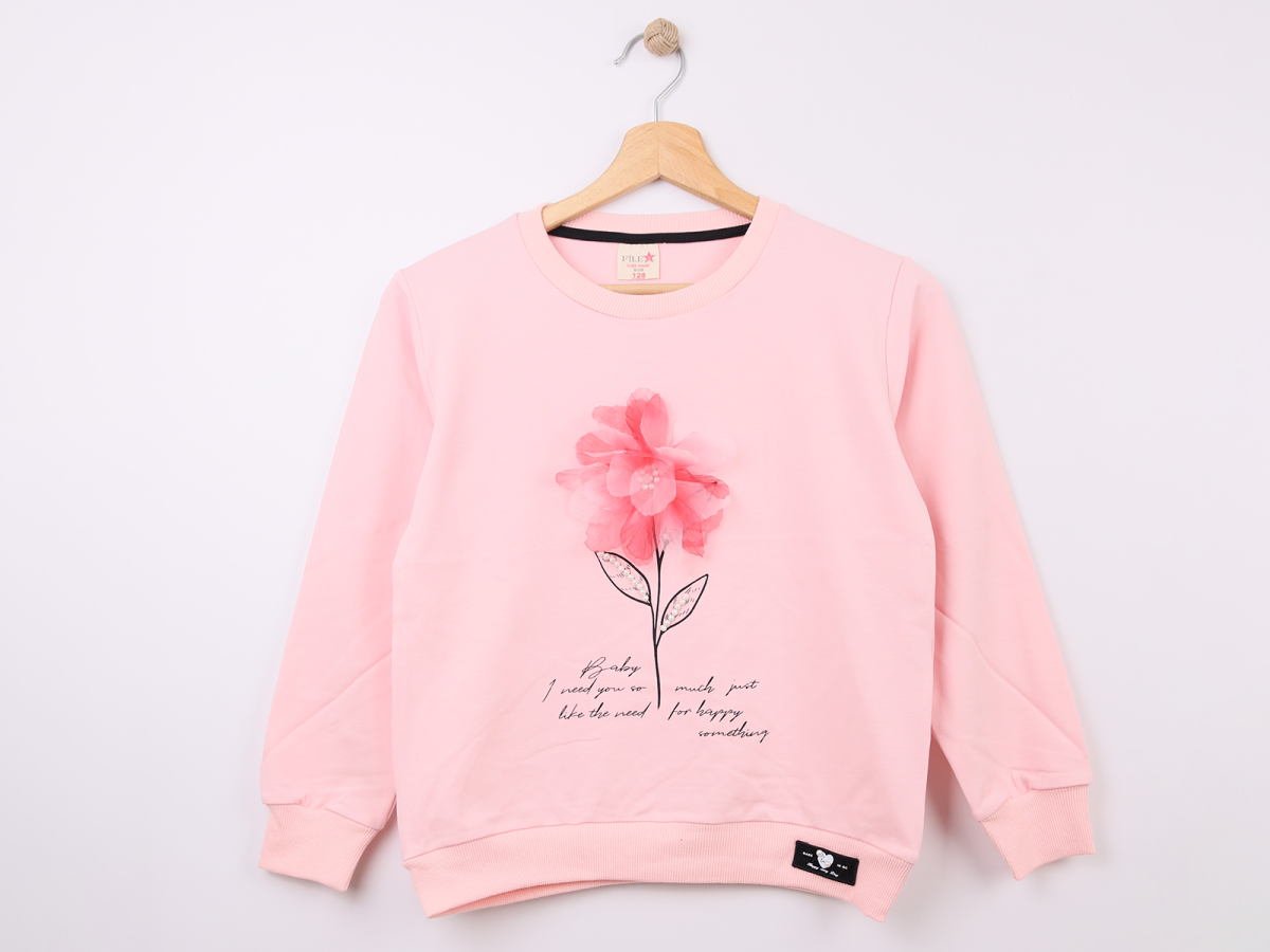 Girls' Tops - B1 - Floral Print Oversize Girls' Sweatshirt