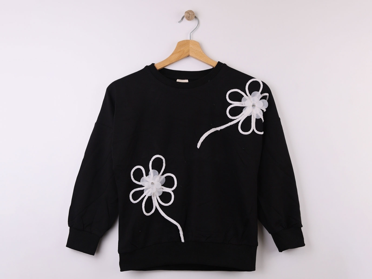 Girls' Tops - B1 - Girls' Sweatshirt with Floral Embroidery