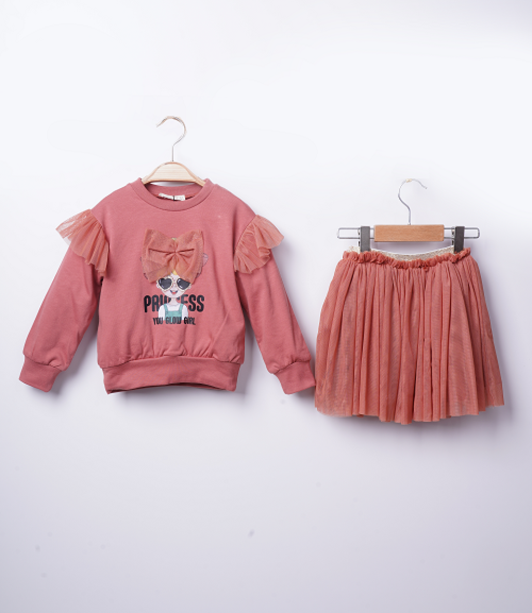 Girls' Tops - Wholesale Girls' 2-Piece Sweatshirt and Skirt Set 3-6Y 1016-23255