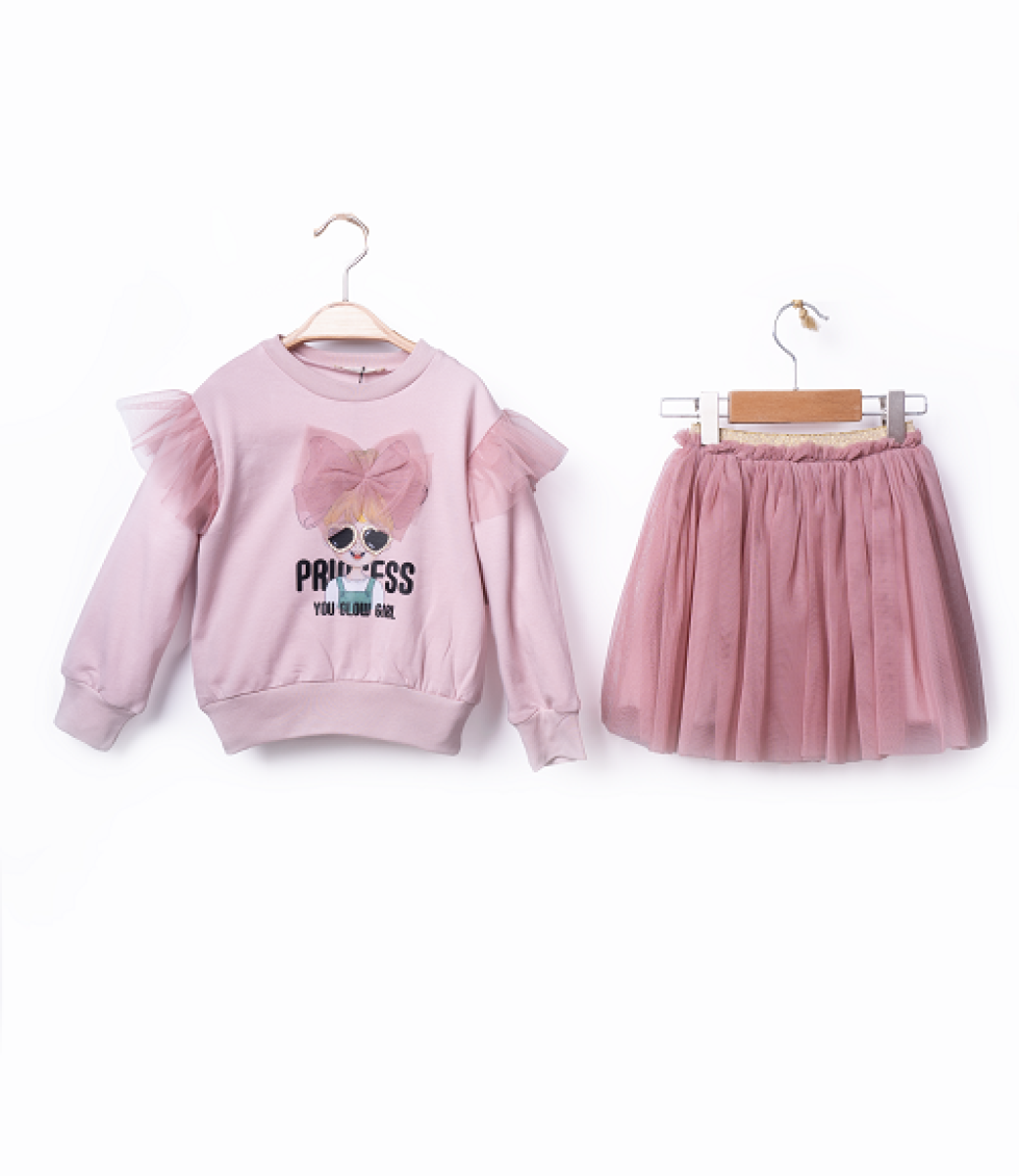Girls' Tops - Wholesale Girls' 2-Piece Sweatshirt and Skirt Set 3-6Y 1016-23255