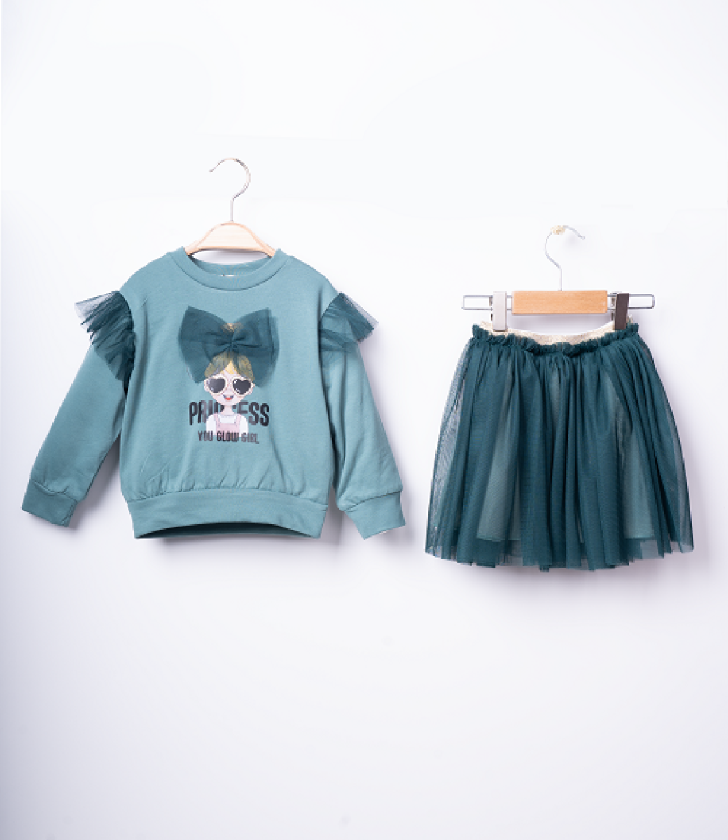 Girls' Tops - Wholesale Girls' 2-Piece Sweatshirt and Skirt Set 3-6Y 1016-23255