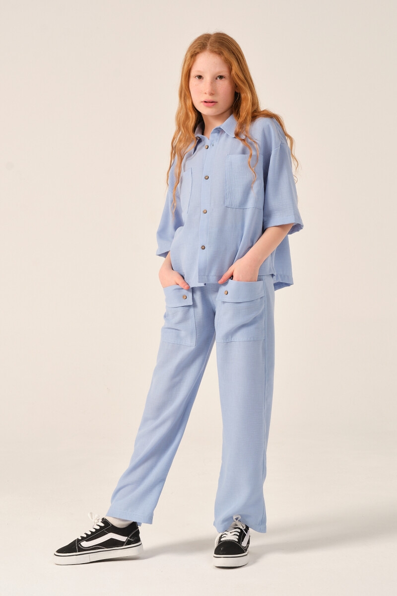 Girls' Trousers - Wholesale Girls' Pocket Detailed Trousers 8-15Y 2051-241Z4ALM01