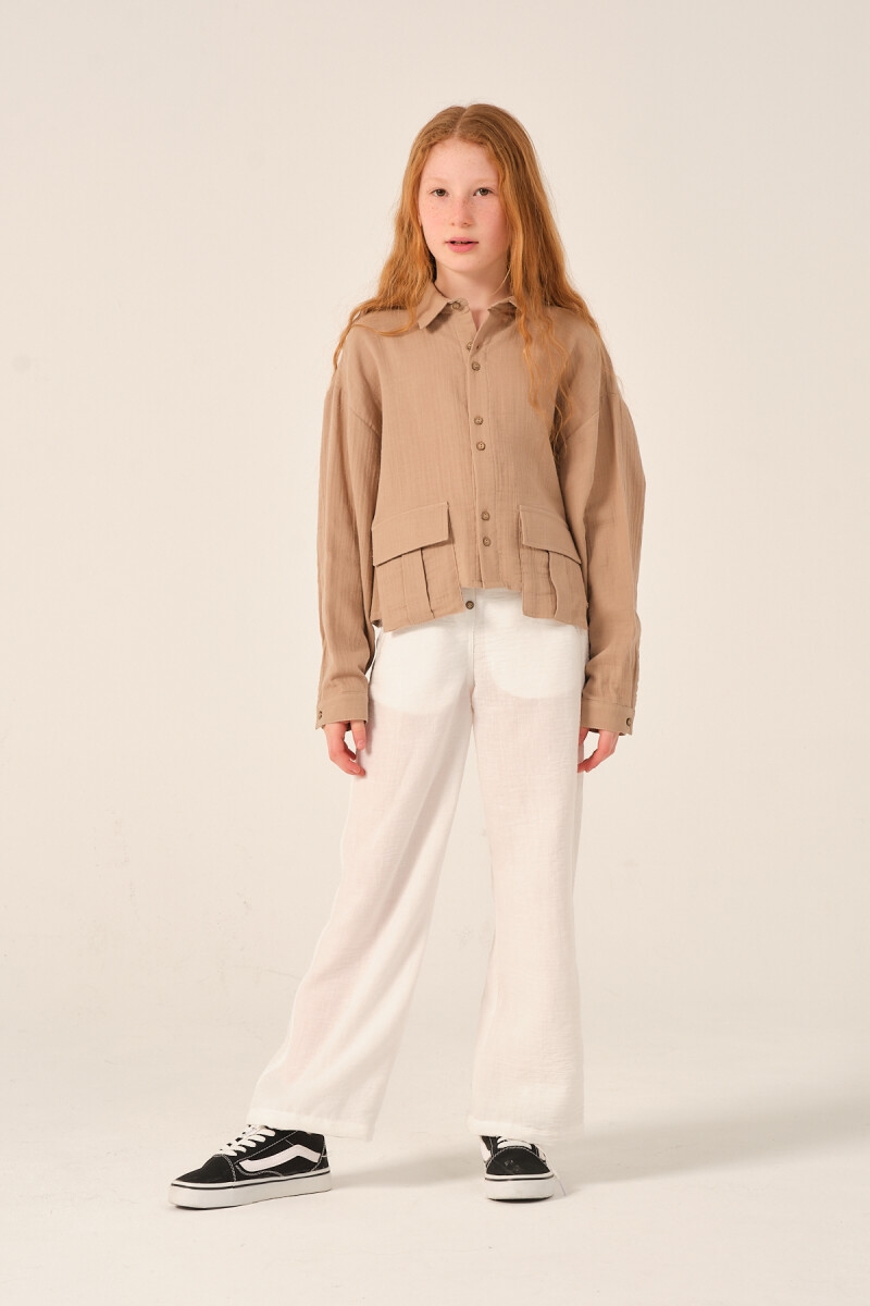 Girls' Trousers - Wholesale Girls' Wide-Leg Trousers with Button Detail 8-15Y 2051-241Z4ALE01
