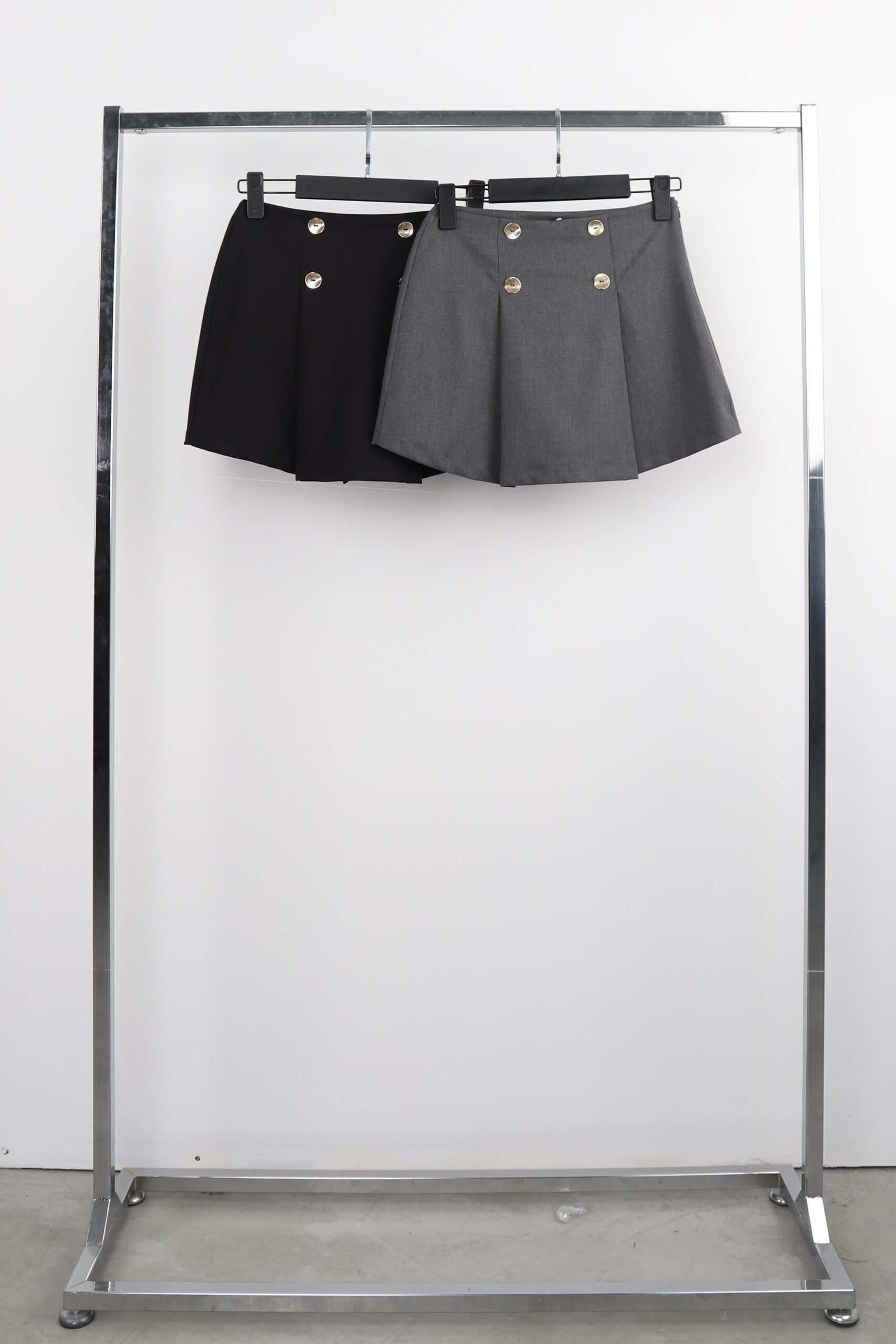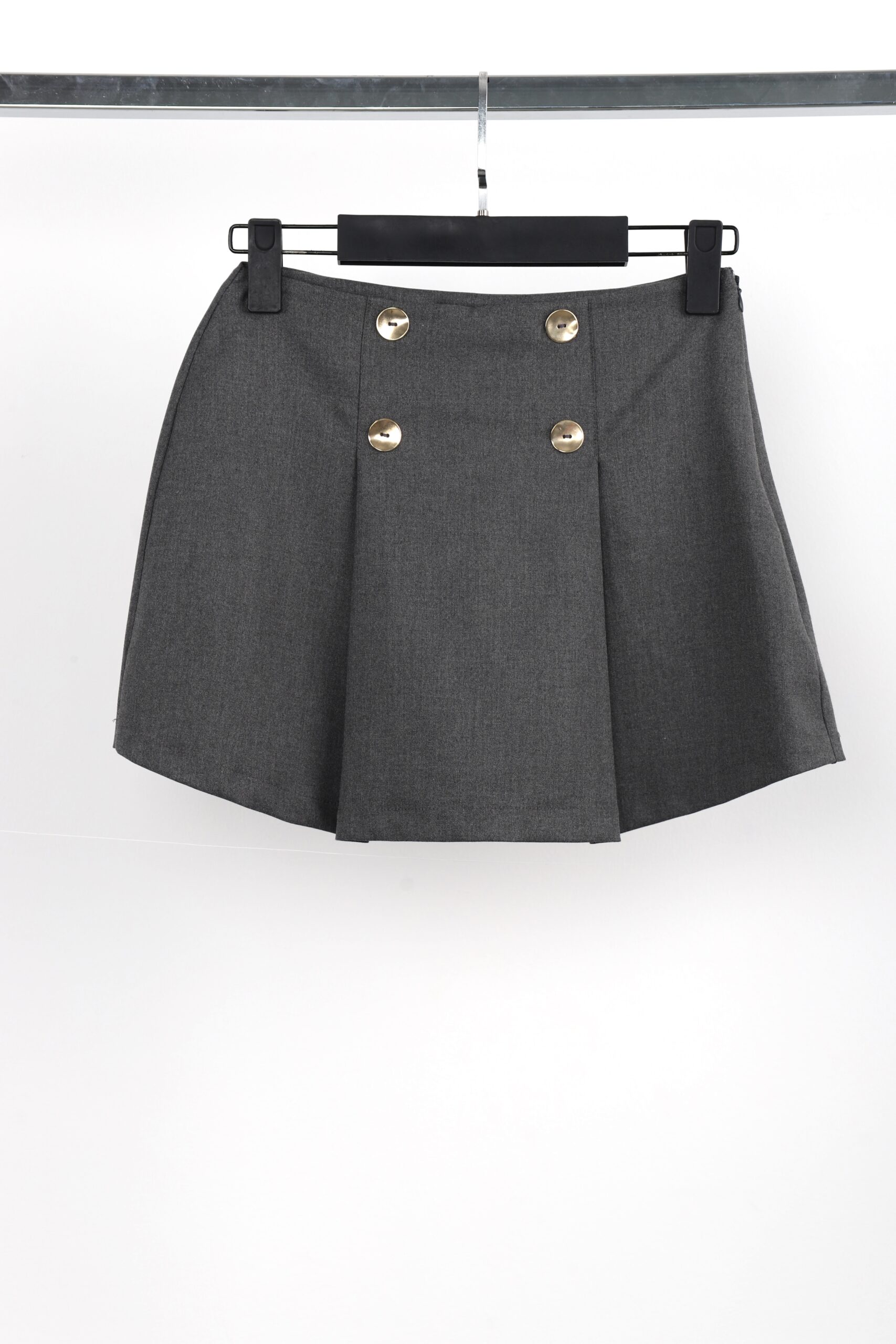 Grey Flared Mini Skirt Mid Waist Zip Up
